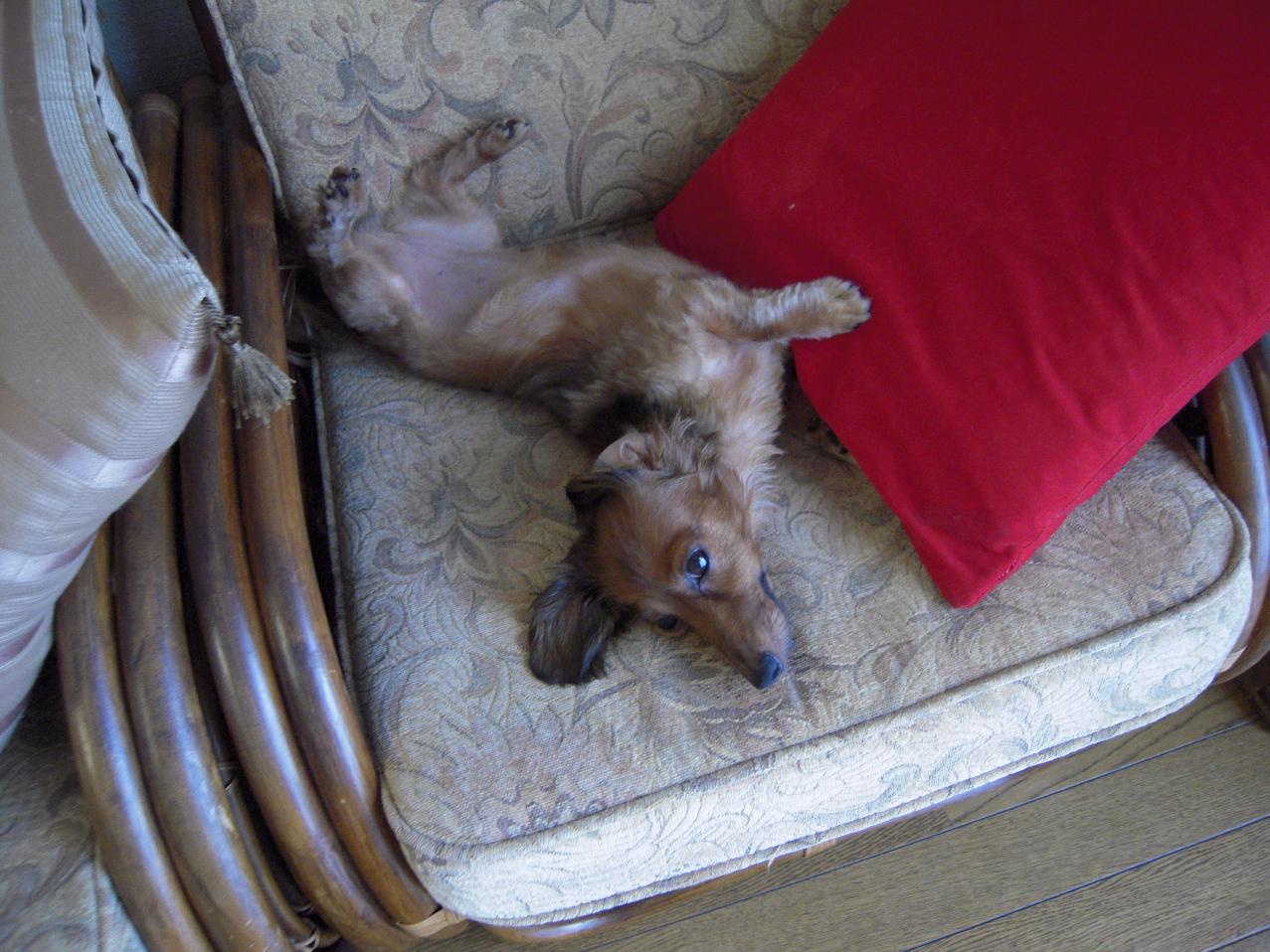 あまりに暑いので、ひなぎくも寝転がり方を工夫しています。