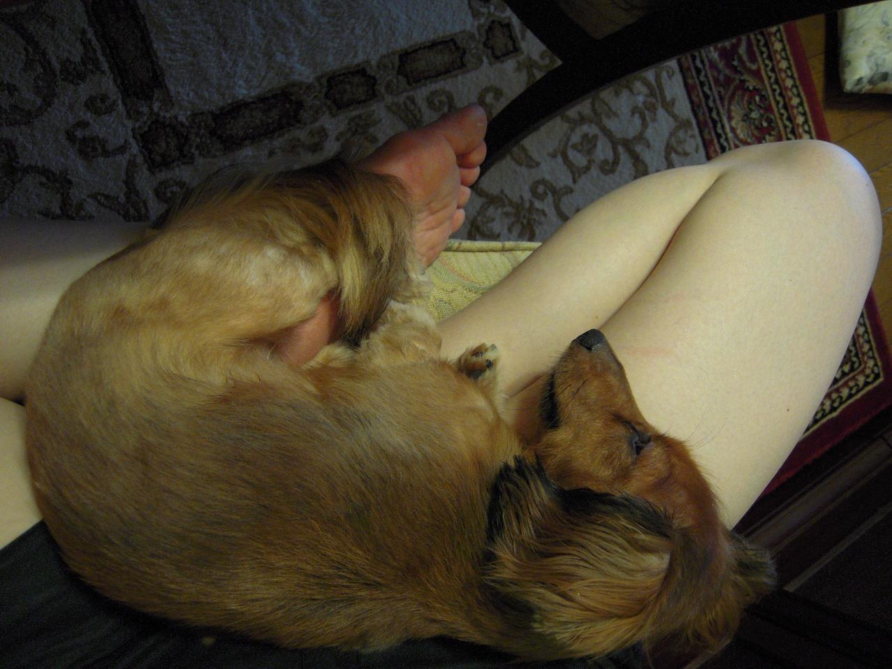 決して細いとは言い難いしおさんのの脚は、ひなぎくにとっては寝心地の良い“肉布団”なのでしょうか。
